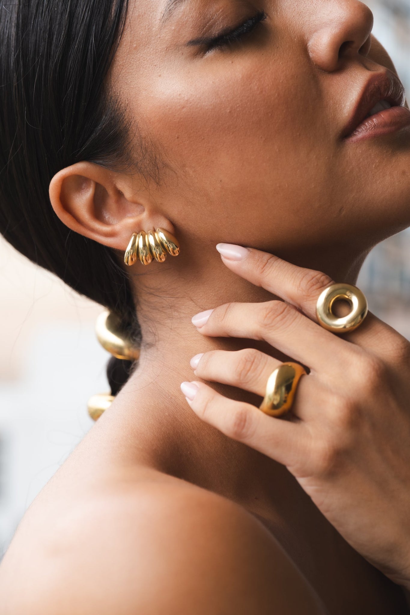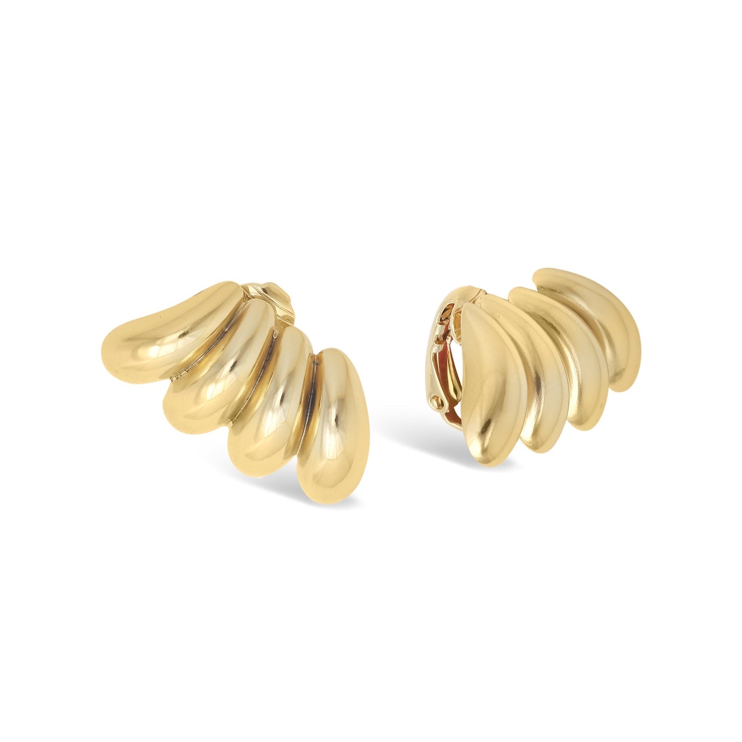 Climbing up the ear with a comfortable clip-on closure, these sculptural earrings feature a rhythmic repetition of rounded forms