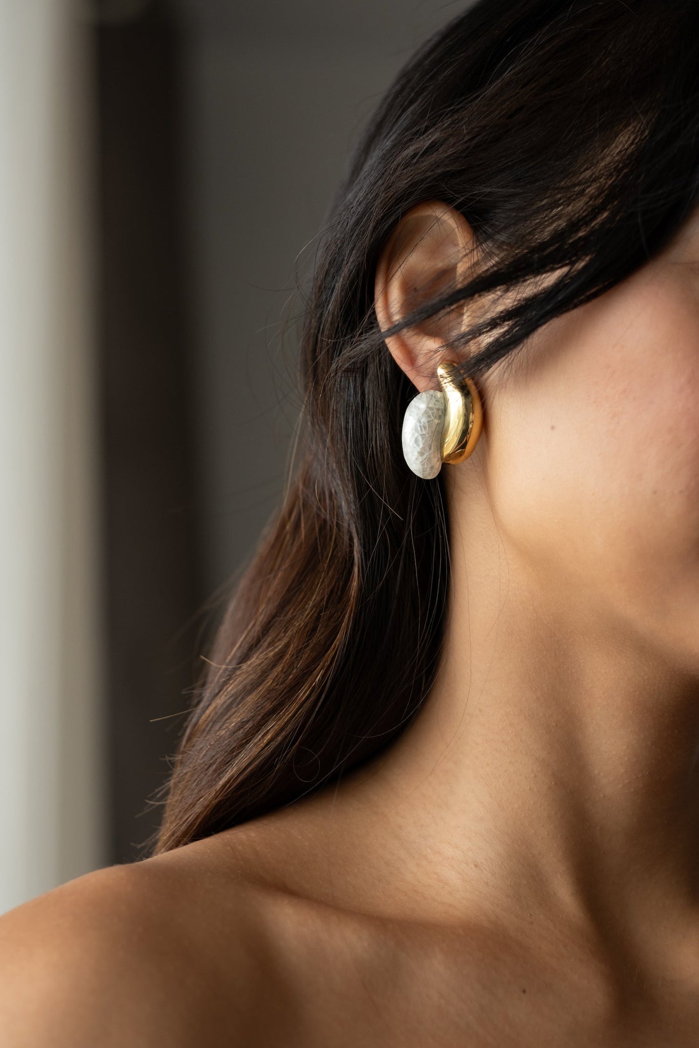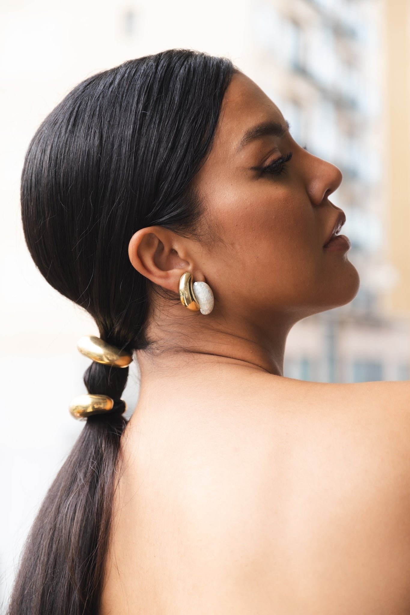 A sculptural composition of bold, rounded forms with a clip-on closure, designed to catch and reflect light with elegance