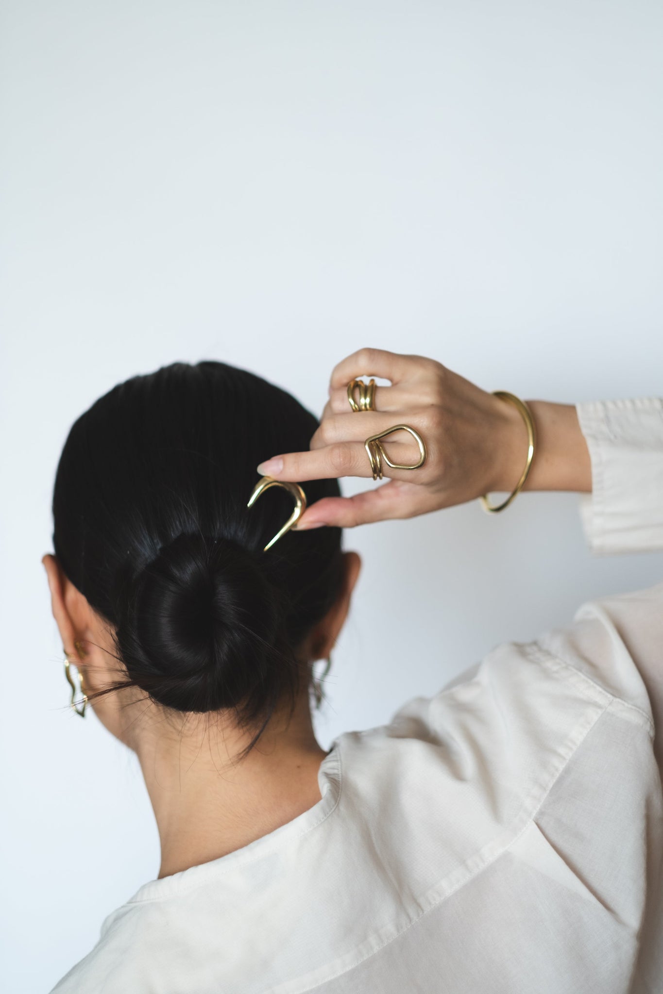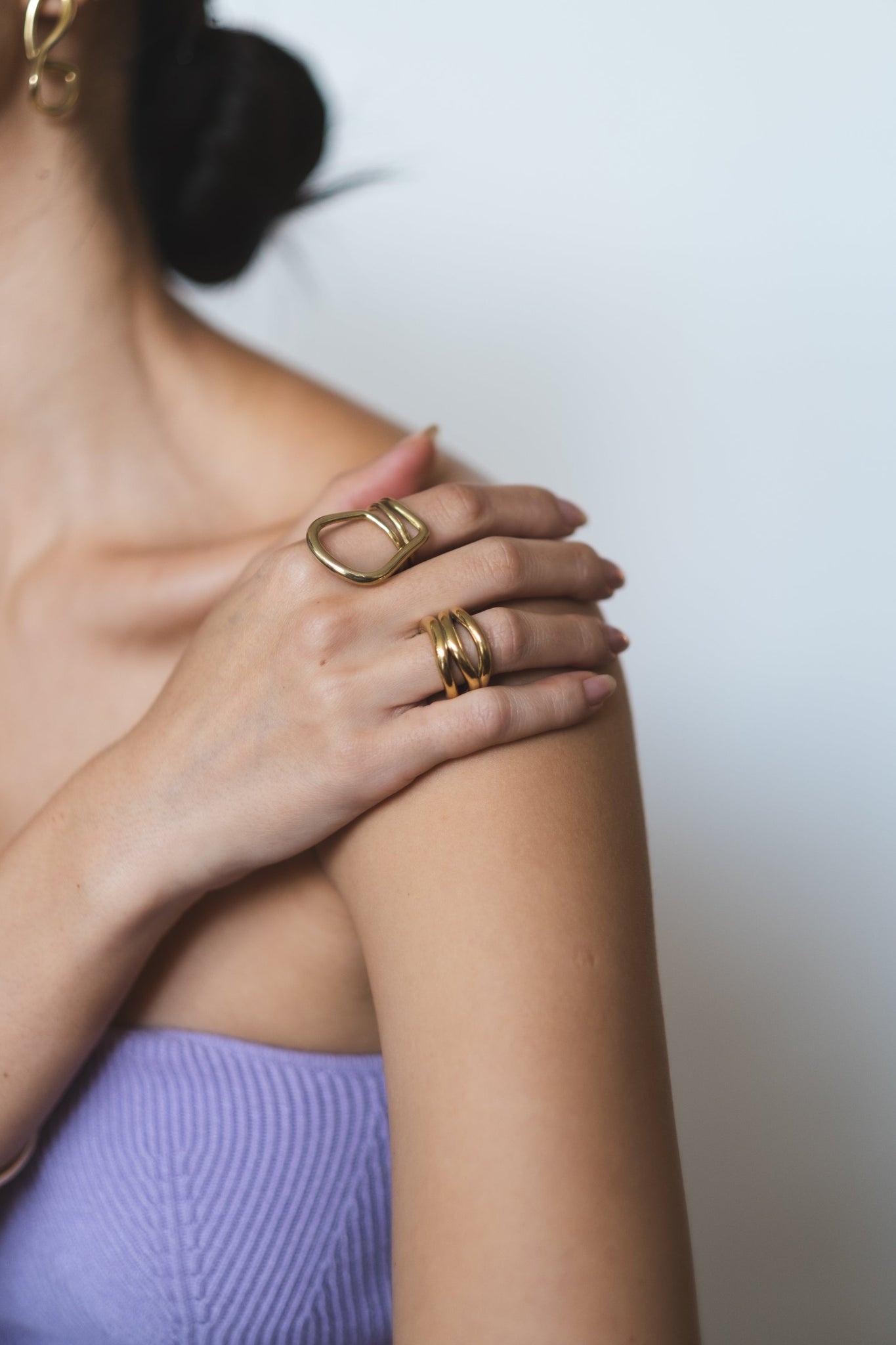 Ring of interlaced volumes that curve gently at varying heights, creating a play of fluid lines and organic balance