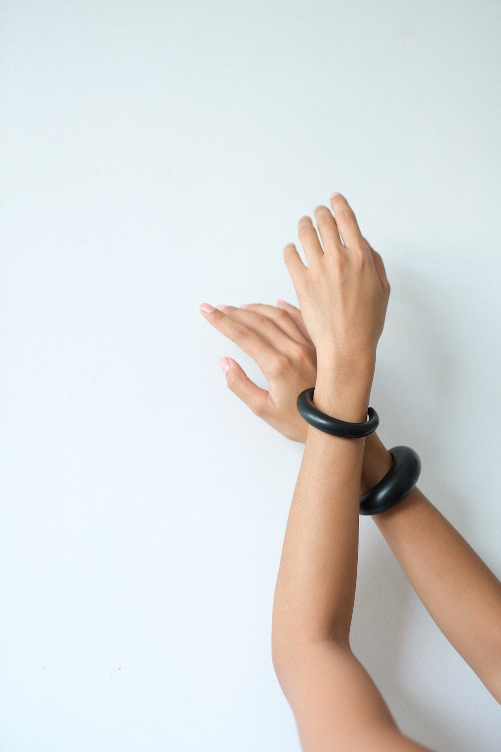 A sculptural resin cuff in matte black — pure, minimal, and effortlessly timeless