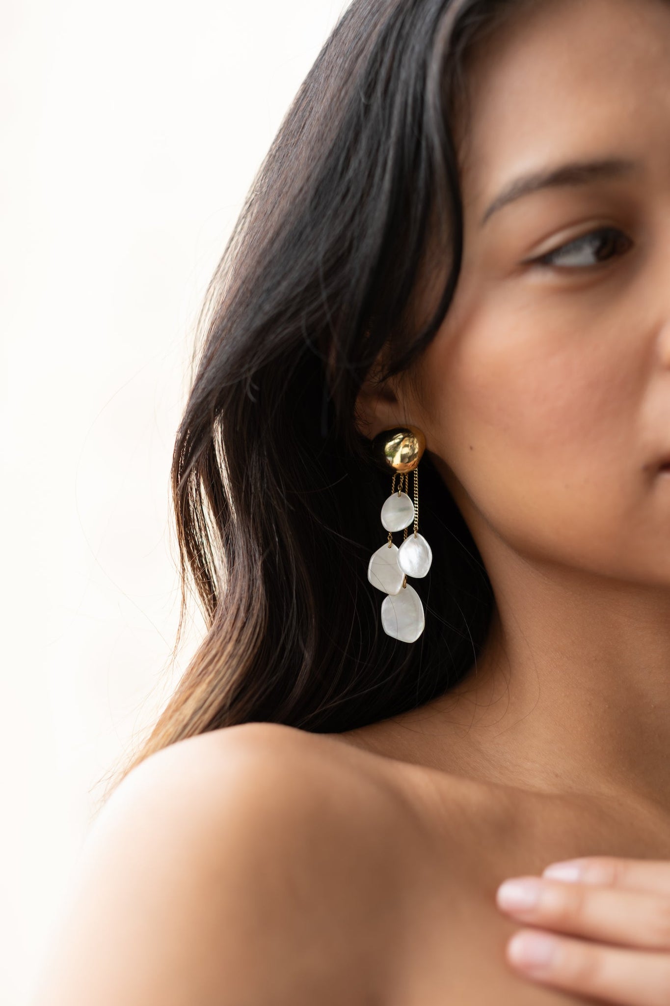 These drop earrings feature layered, petal-like forms that sway gently with movement — a nod to the serene flow of jellyfish, refined in soft, organic lines