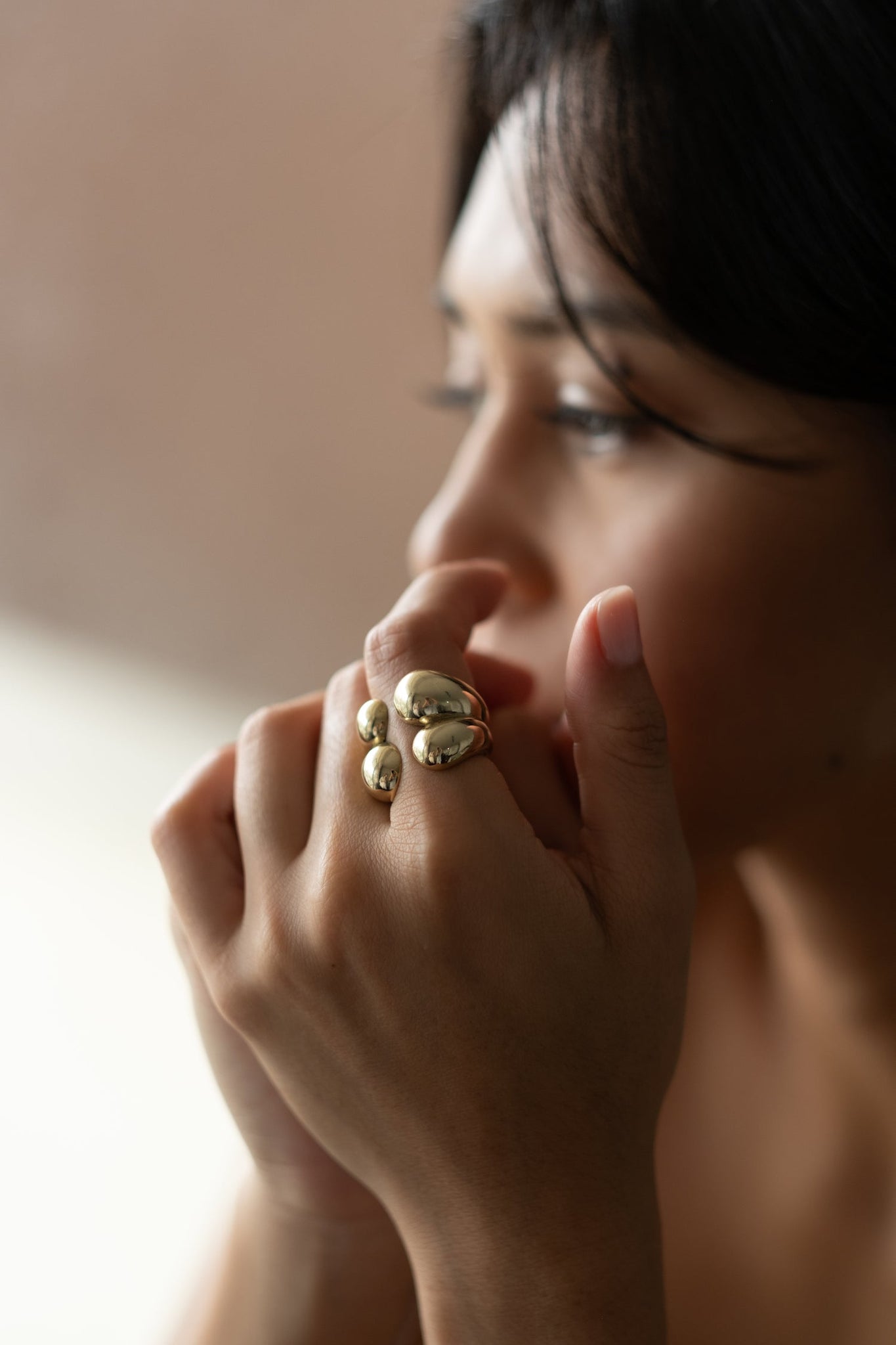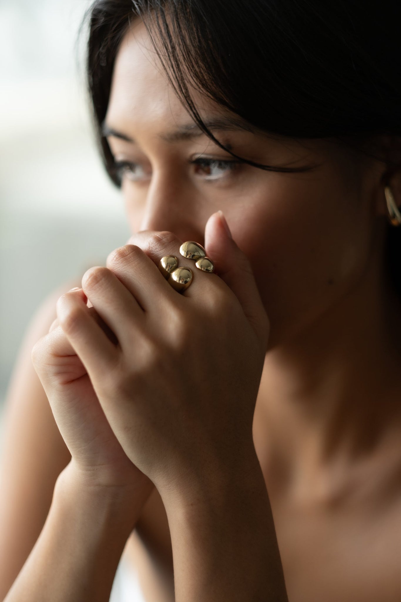 A sculptural ring composed of four rounded forms that flow into one another, creating a balanced interplay of volume and softness