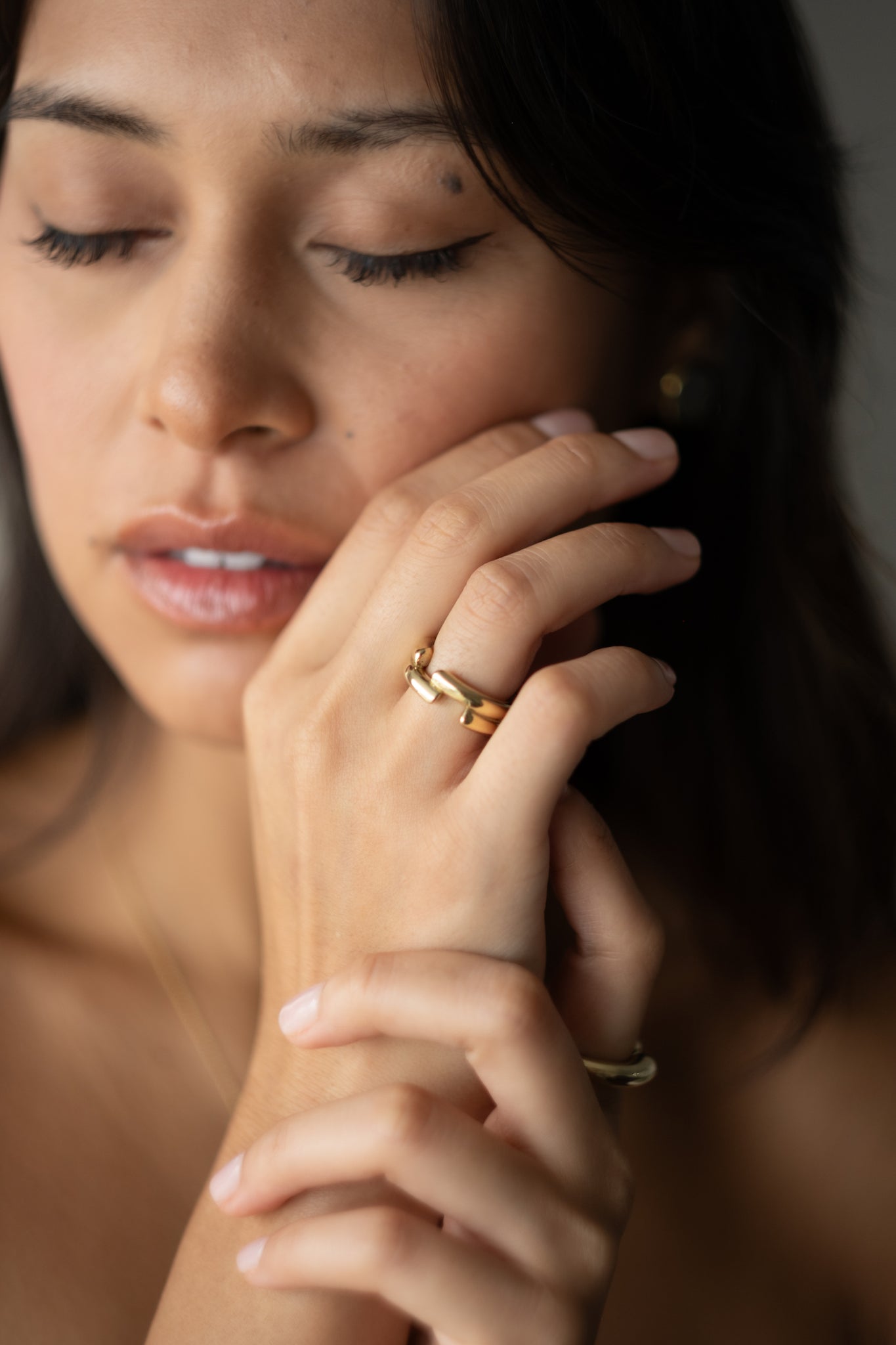 An open ring with two parallel bands in sculptural balance — a bold yet refined piece that plays with volume, symmetry, and space.