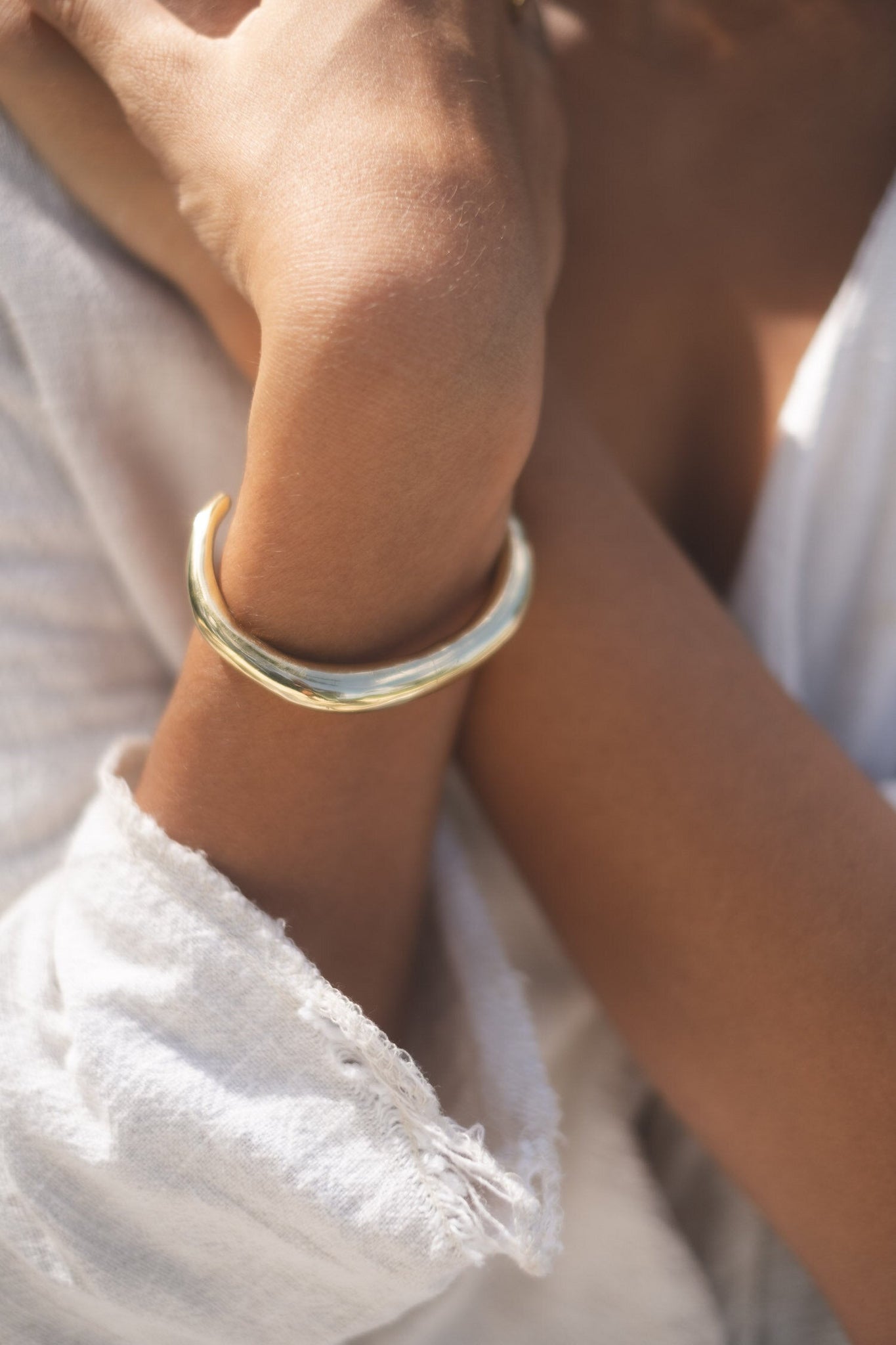 A sculptural solid bangle where softness meets strength — organic, balanced, and quietly powerful