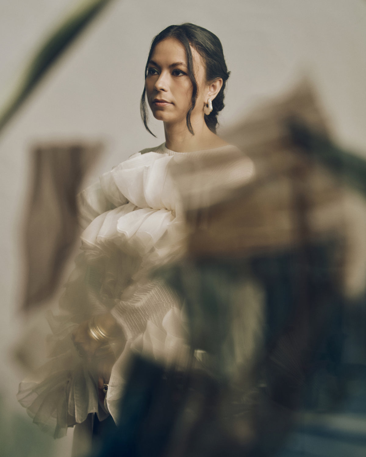 Sculptural earrings inspired by the irregular flow of liquid, featuring fluid contours and a striking red resin finish. A reversible design you can wear on either side