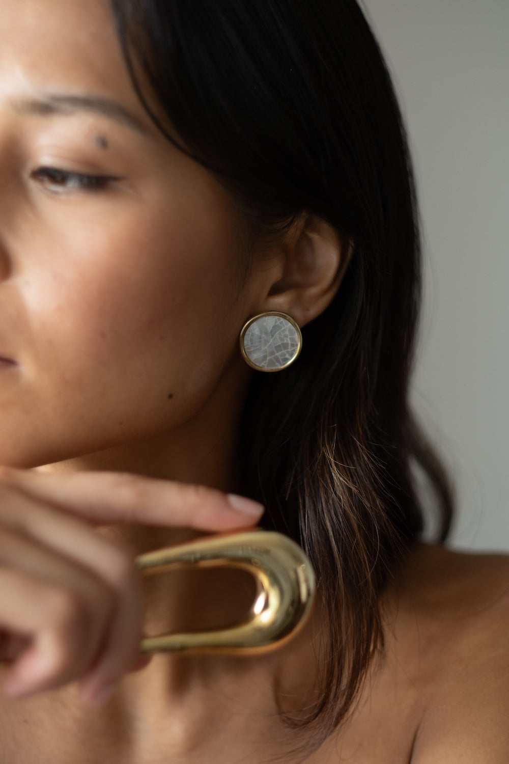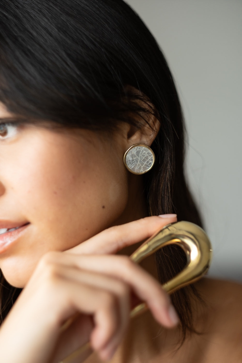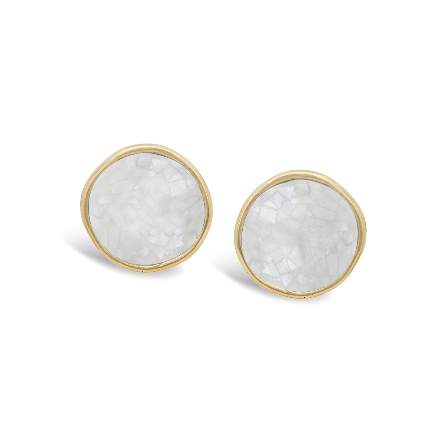 Timeless round earrings highlighted by the natural luminosity and refined simplicity of mother-of-pearl