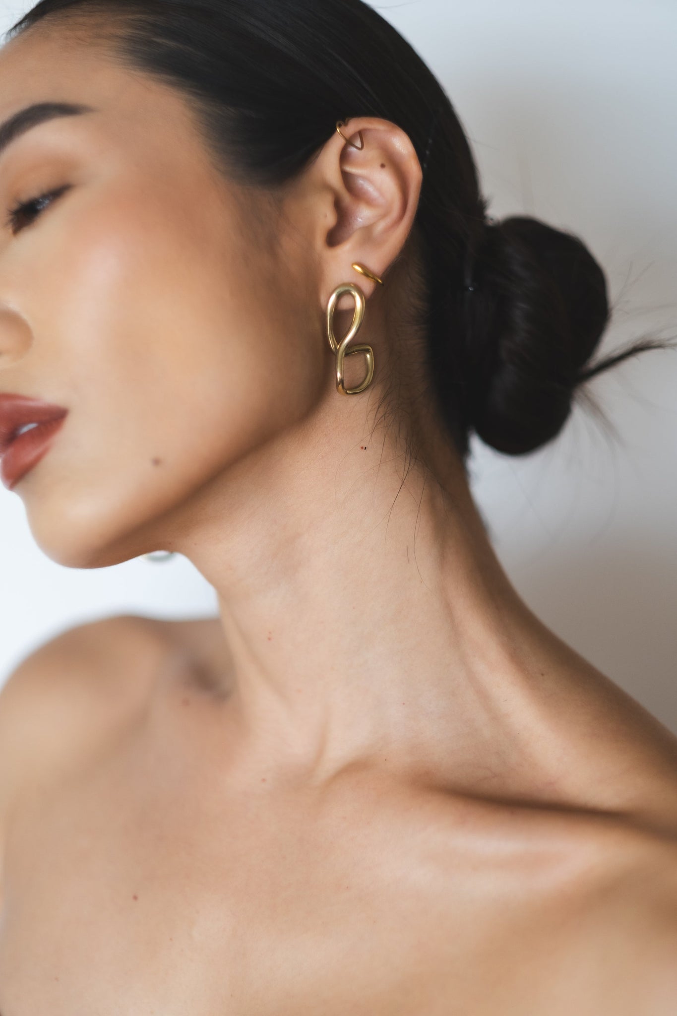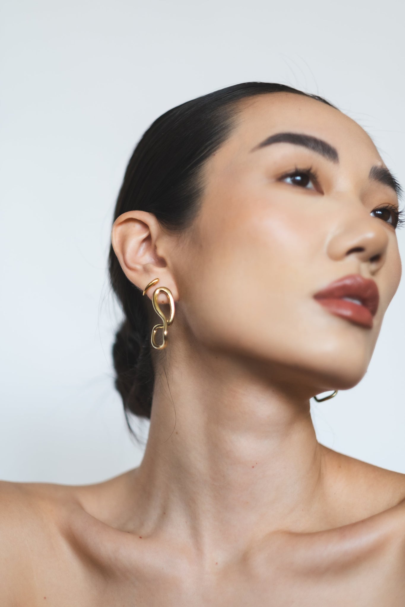 A continuous, flowing form with sculptural simplicity—these earrings recreate space through fine lines, bringing movement and modern balance