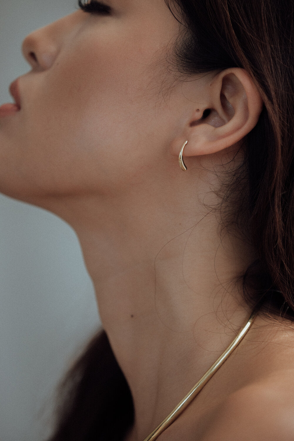 Minimal and lightweight, these gently curved earrings trace a subtle line along the ear—quietly refined and effortlessly versatile